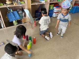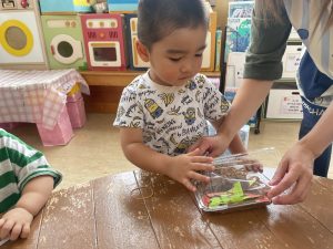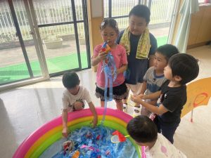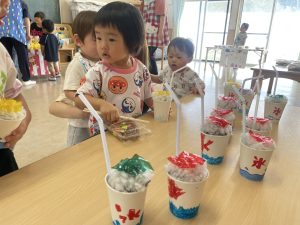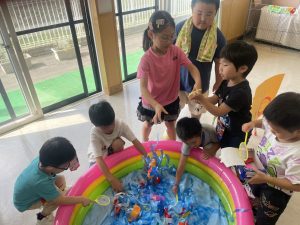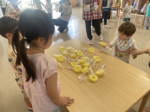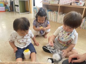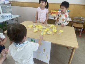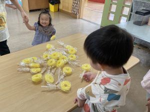 今日は、桃組(0歳児)や楓組(1・2歳児)、桜組(3歳児)も一緒に
