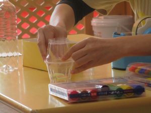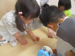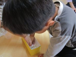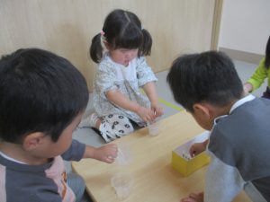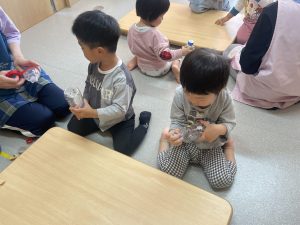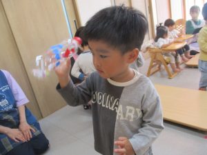 振ったり叩いたりすると音がするので、みんな不思議そうに、楽しそうに作っていました。