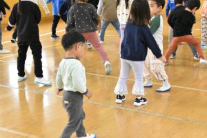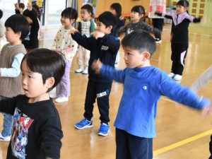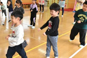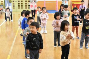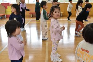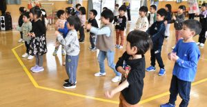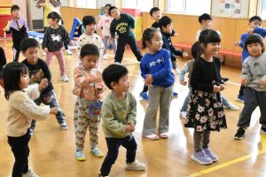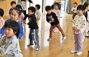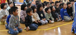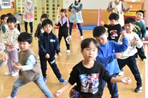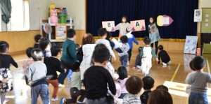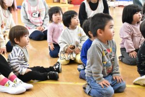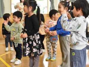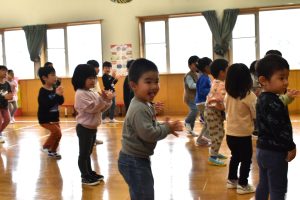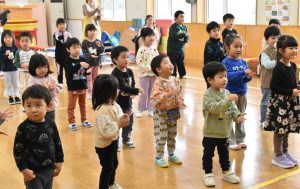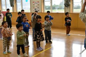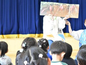 まずは、遊戯室で、みんなで練習してきた「イモ掘れホーレ!」を踊り、絵本「はたけのあじ」を見ました。
