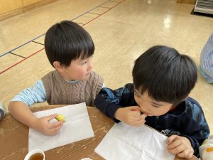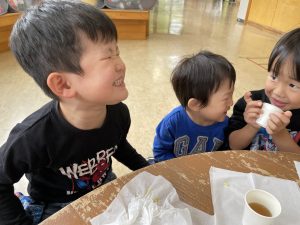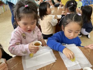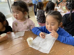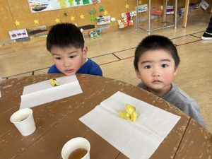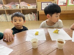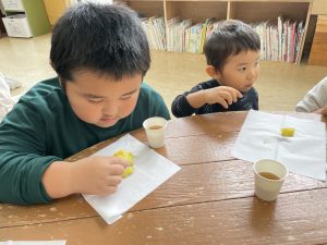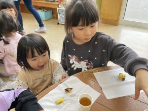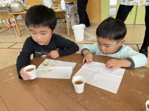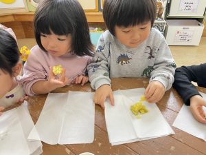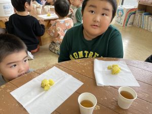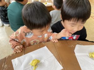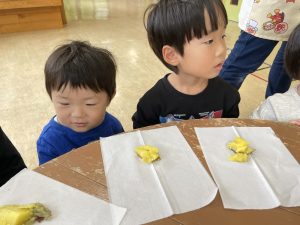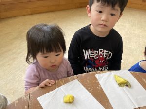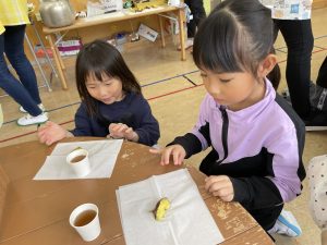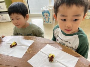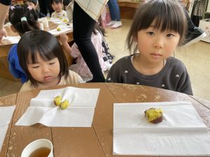 また、昨日からサツマイモを包んだりしてお手伝いしてくれた松組(5歳児)さん、ありがとう!