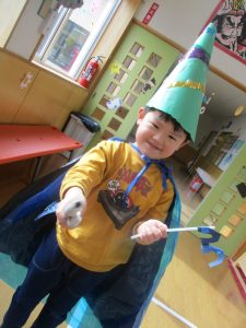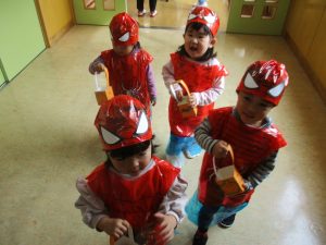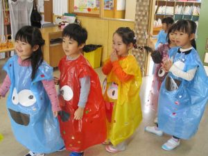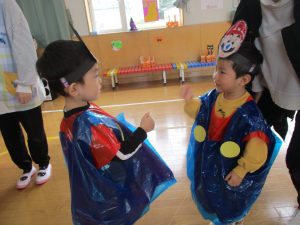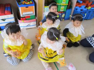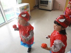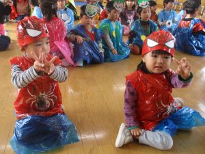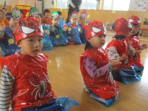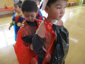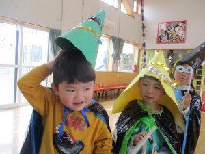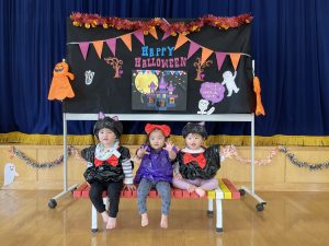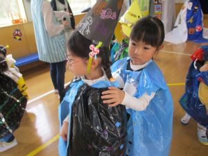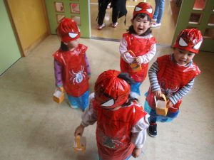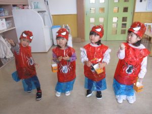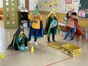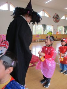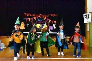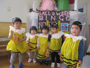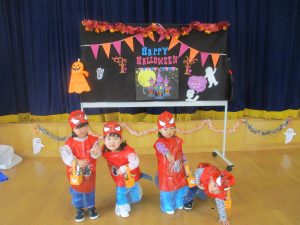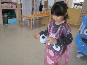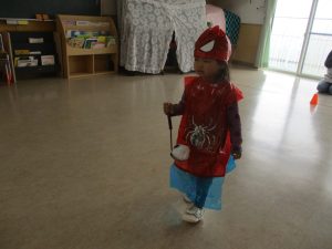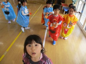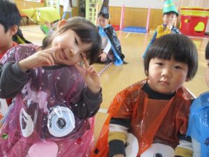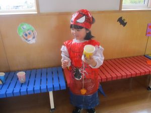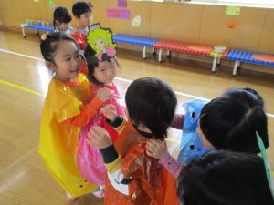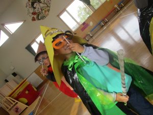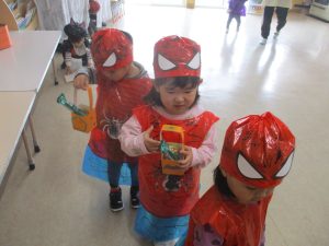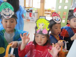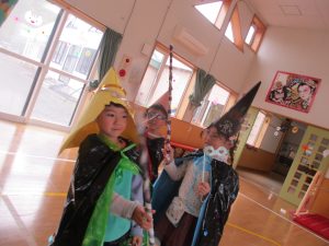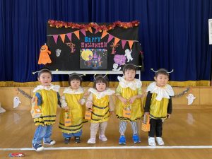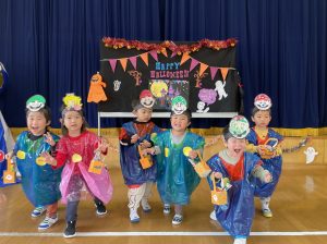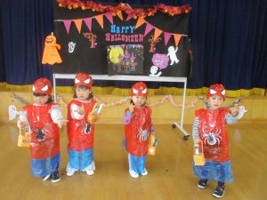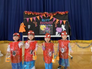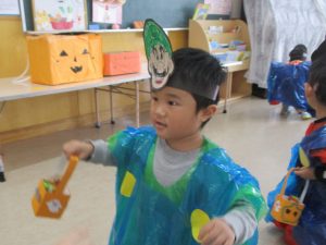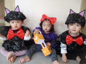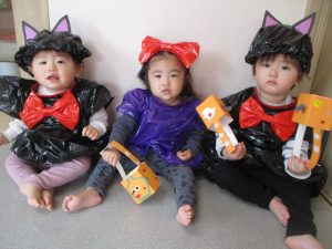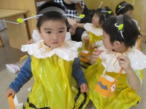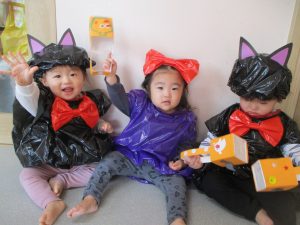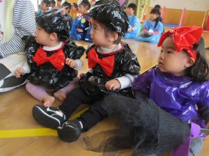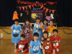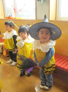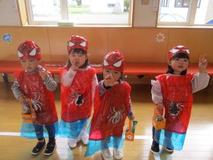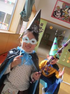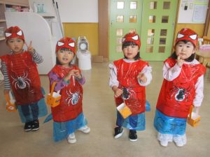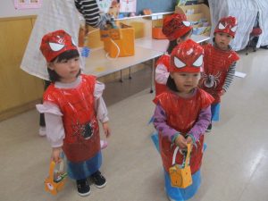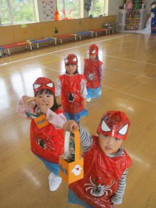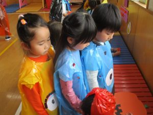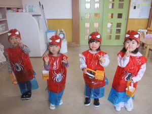 今日は「ハロウィンパーティ」。さまざまなキャラクターに仮装して、バスケットをもって集合。