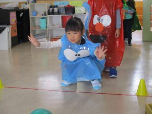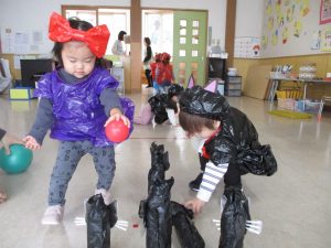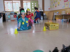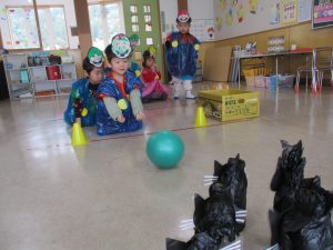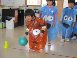 ダンスをしたり、絵本を読んだり、ボーリングや玉入れなどのゲームをしたりしました。