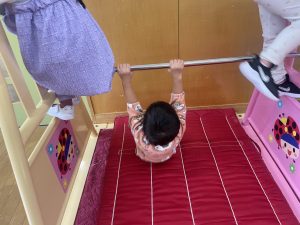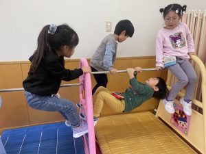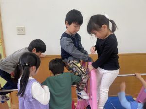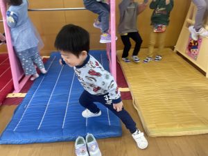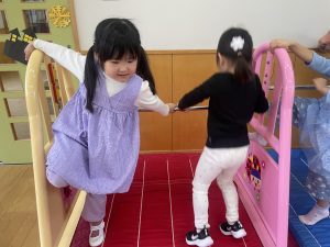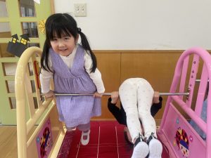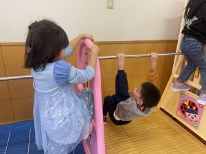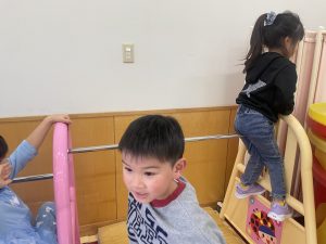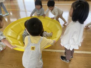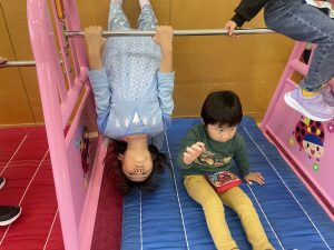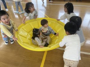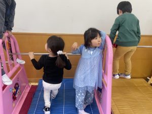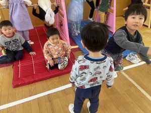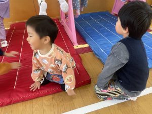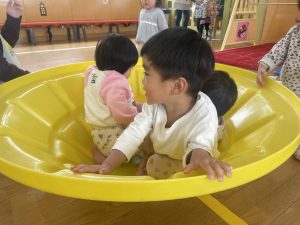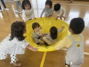 後半は遊戯室へ。楓2組(2歳児)も一緒にあそんでくれました。