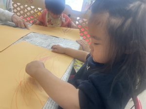 桃組(0歳児)と楓1組(1歳児)のお絵描きの様子をご覧ください。