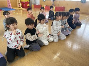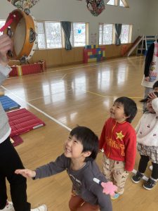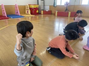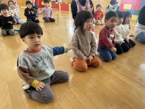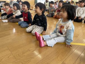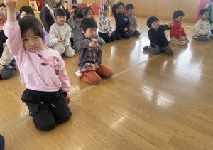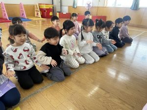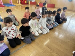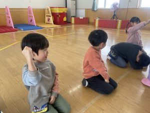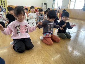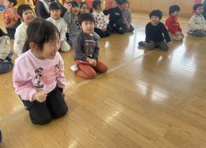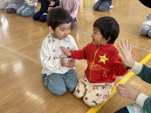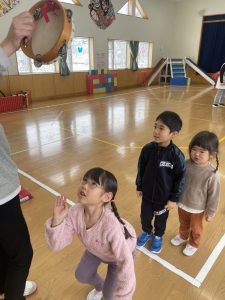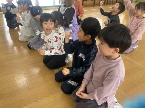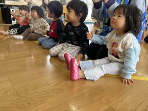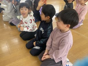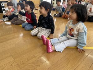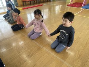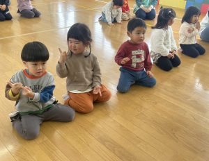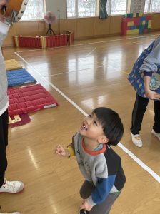 今日は木曜日ですので、「えいごであそぼう」。この日を子どもたちはとても楽しみにしています。