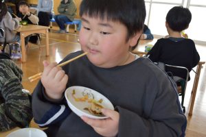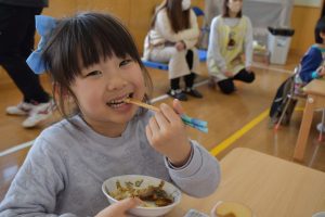 食育集会の後は、給食を食べている様子も参観いただきました。多数の保護者の方々のご参観、そして、講師の先生方、ありがとうございました。