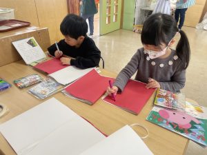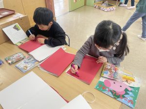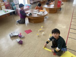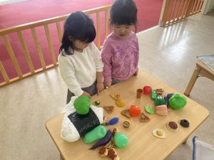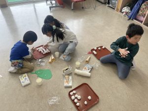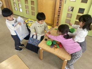 2月末の「お店屋さんごっこ」に向けて、着々とプロジェクト保育が進んでいます。