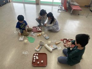 店番も交代で行い、さらに自分たちで買った商品であそびました。