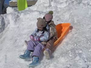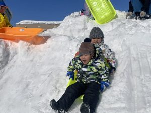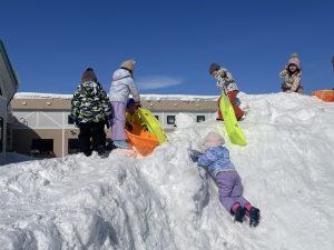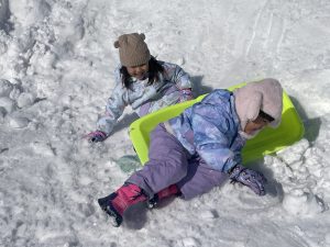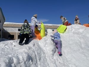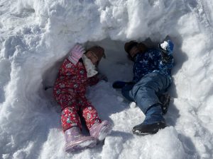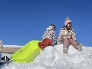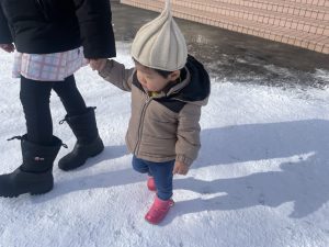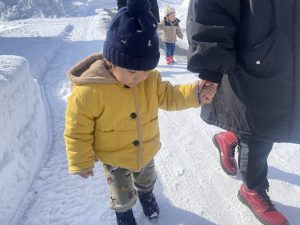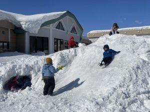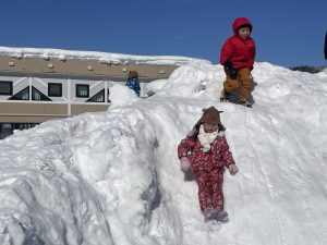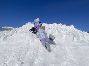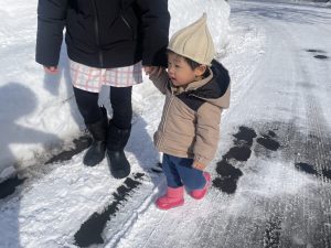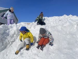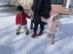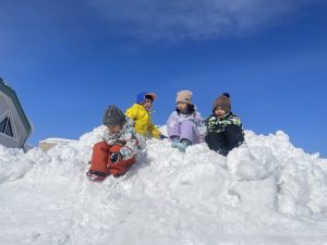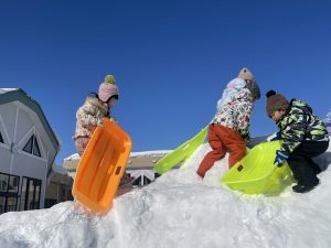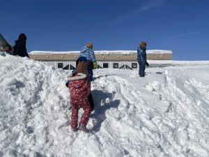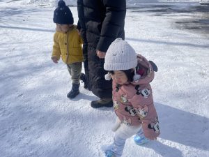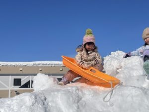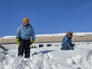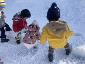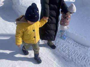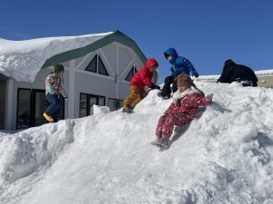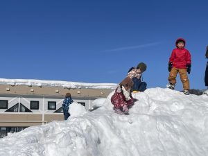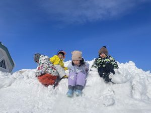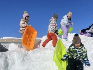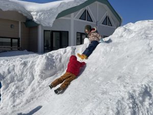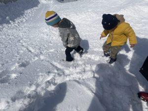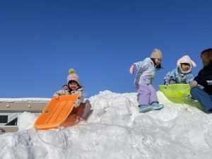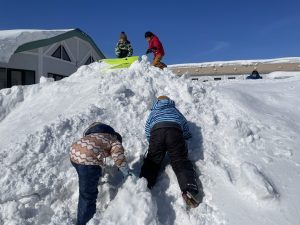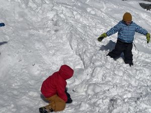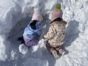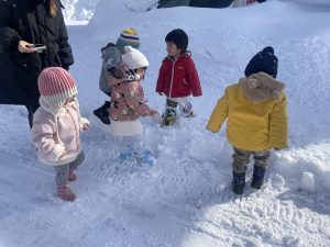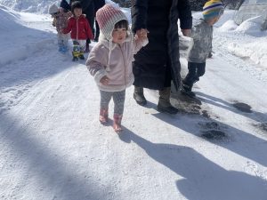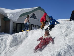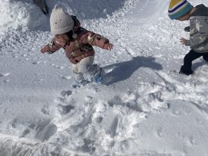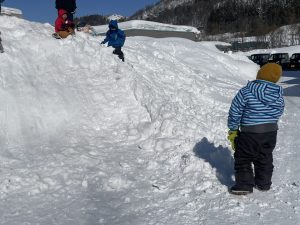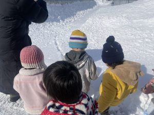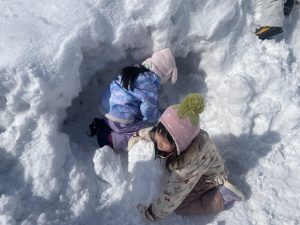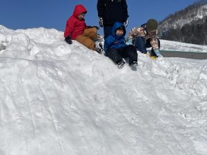 竹組(4歳児)、そして松組(5歳児)は、雪山であそびました。前回、先生が作ってくれたかまくらが雪で埋もれていたため、