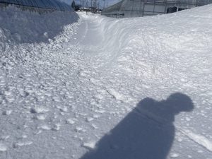 考えてみると、いつもは除雪した後の道しか歩いてません。雪が積もった道を楽しそうに歩いていました。