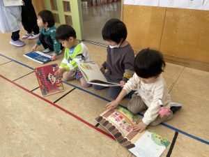 松・竹・桜・楓2組(5・4・3・2歳児)は「しののめほるぷ館」。今年度も今週と来週のあと2回となりました。