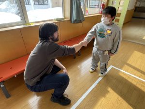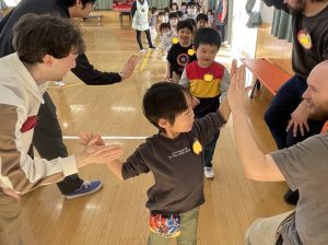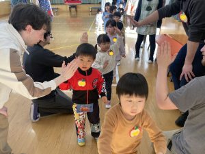 最後はGood-bye&see you!とハイタッチして、大きい子たちはお見送りをしてくれました。黒石のどこかで先生方を見かけたらHi!と声をかけてみるのもいいですね!