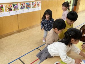 本日、今年度最後の「しののめほるぷ館」(2~5歳児)です。