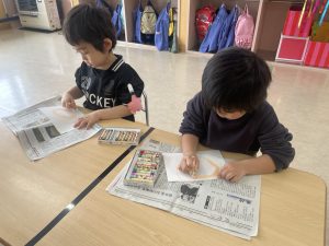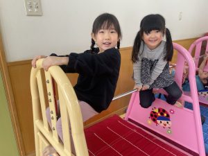 先日行った進級記念写真撮影(0~4歳児)ですが、全クラスにお休みがいましたので、本日、再撮影しました(0~4歳児)。ご協力ありがとうございました。その後の保育の様子をご覧ください。