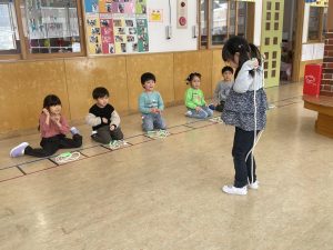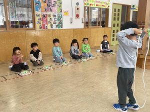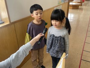 また、給食前にメニュー紹介を放送しているのですが、今週からその当番に竹組(4歳児)も仲間入り。卒園式までは松組(5歳児)と一緒に行い、卒園式後は竹組さんの仕事となります。