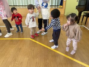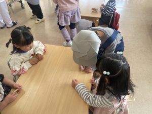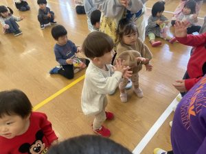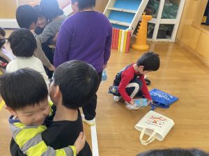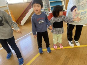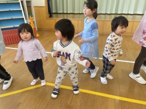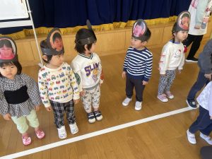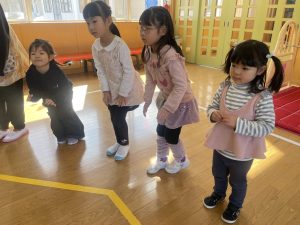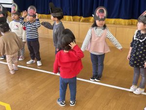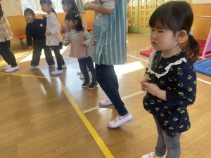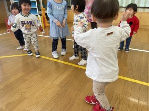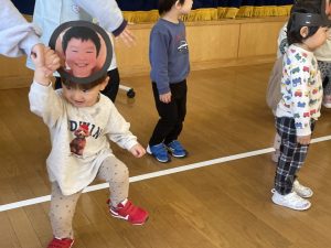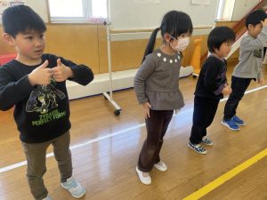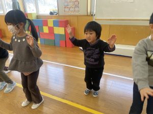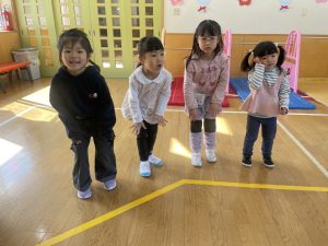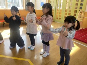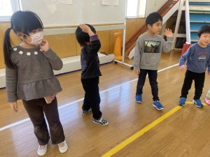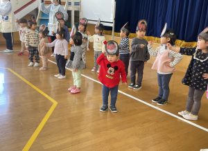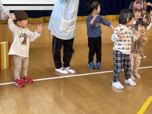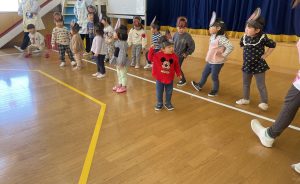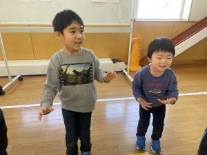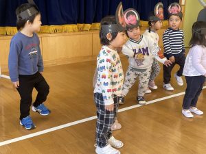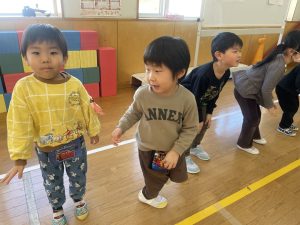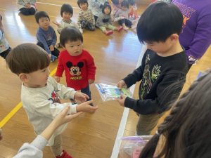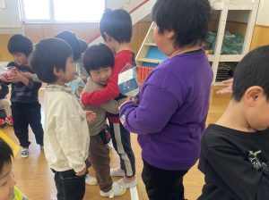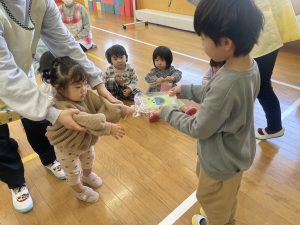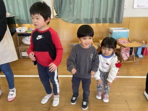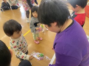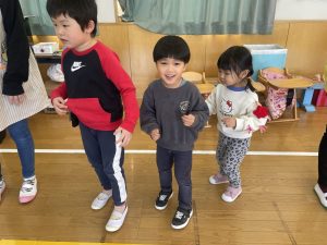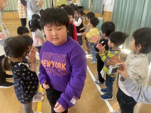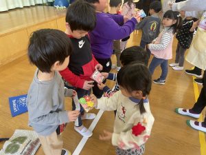 また「えいごであそぼう」から2曲、みんなで踊りました。最後は松組さんへのプレゼント、そして、松組さんからの卒園記念品が披露されました。