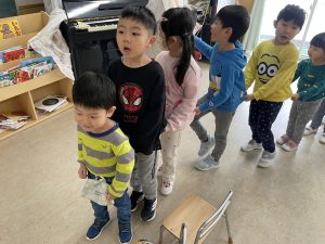 楓2組も4月からの以上児としての生活を意識して、少しずつ慣らしていきます。