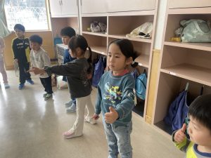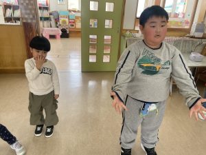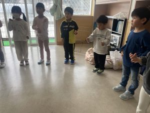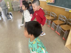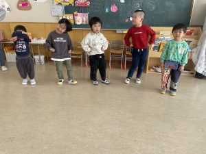 松・竹・桜・楓2組(5・4・3・2歳児)は、みんなで話し合って、まずは体操やダンスをすることに。