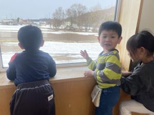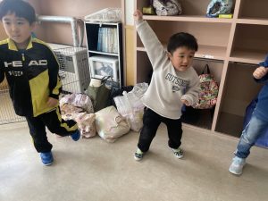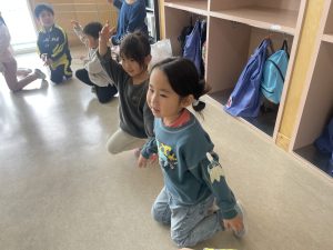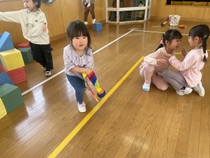 後半は遊戯室であそびました。汗もかき、お腹もペコペコ。給食も美味しくいただきました。