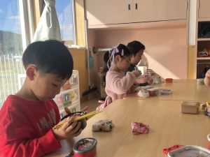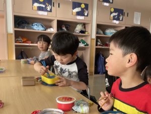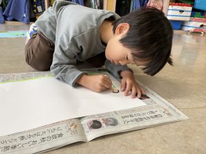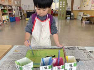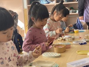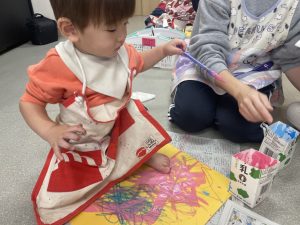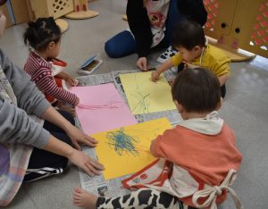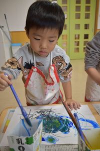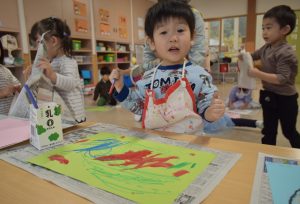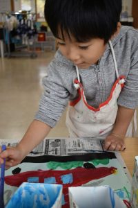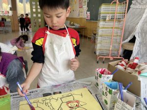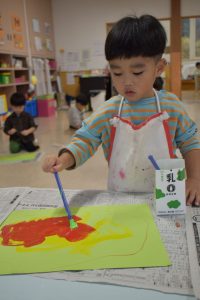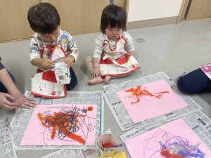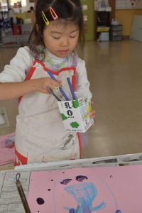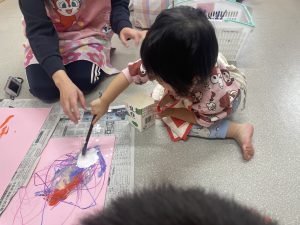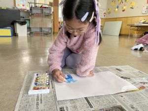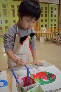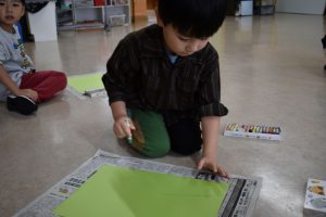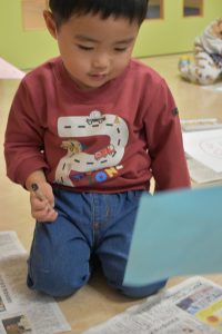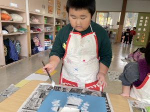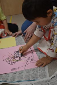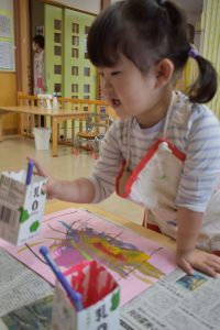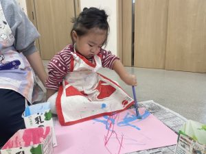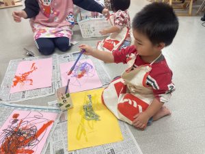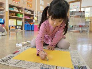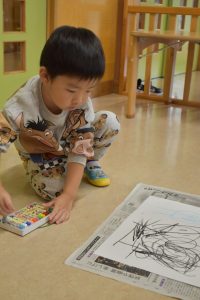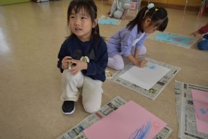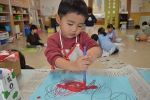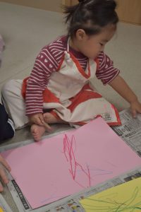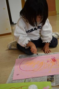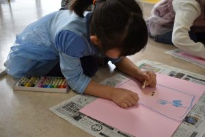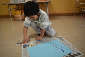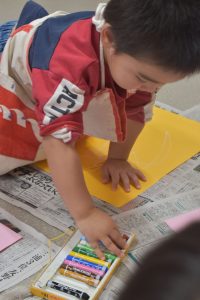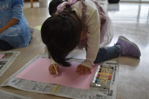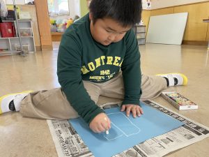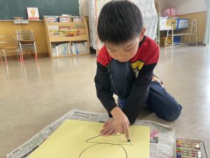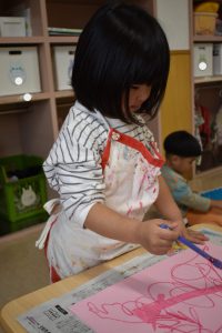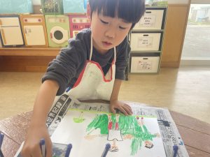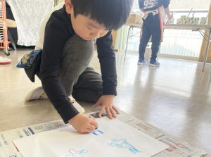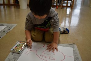 ※朝の自由遊びの時間やクラスごとに行いましたので、まだ描いていない子もいます。