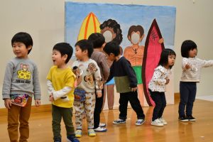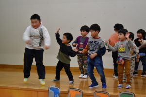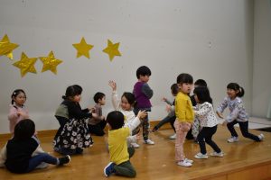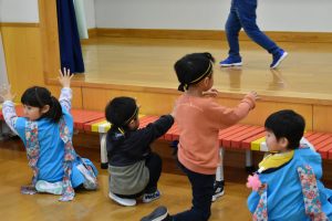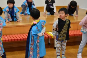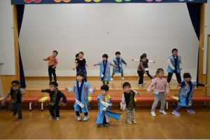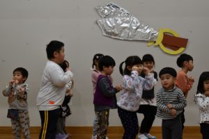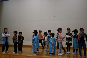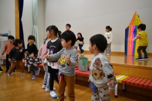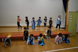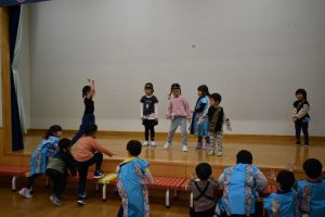 さて、今日は恒例のおゆうぎ会”ごっこ”。