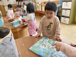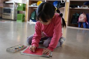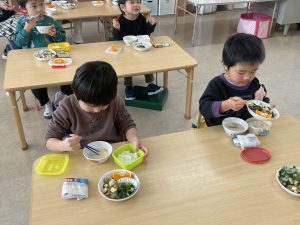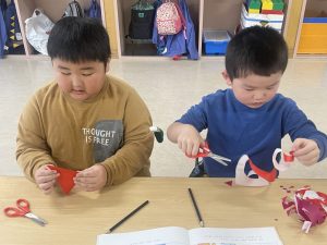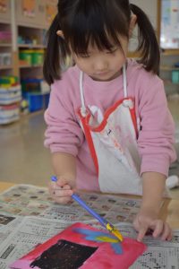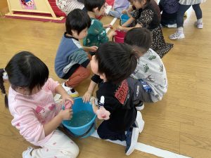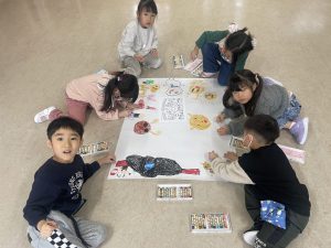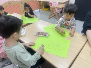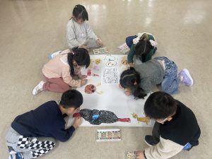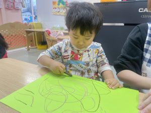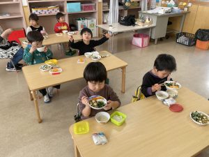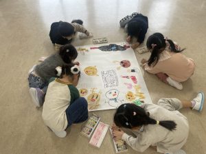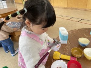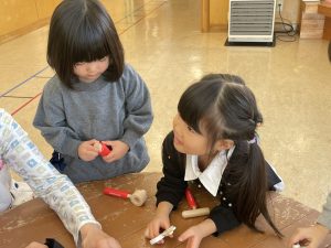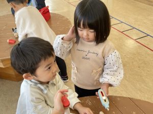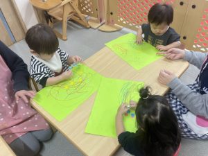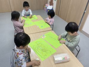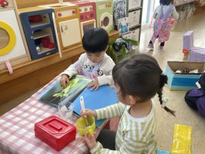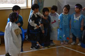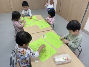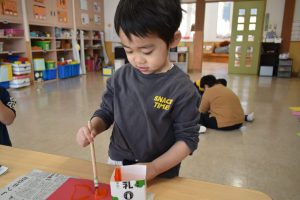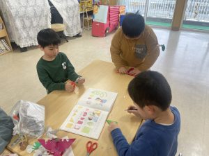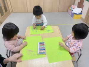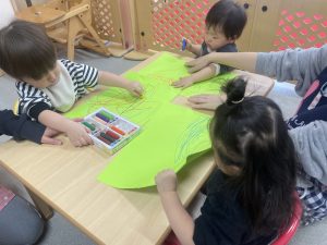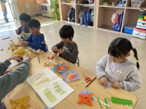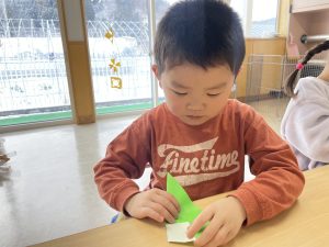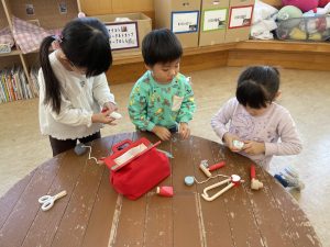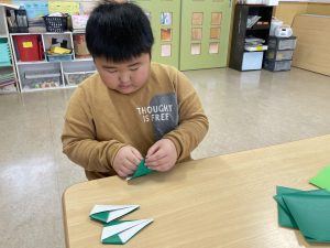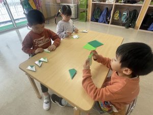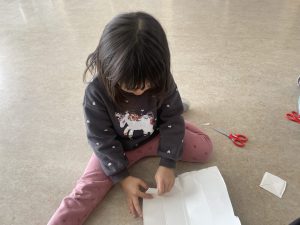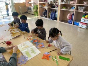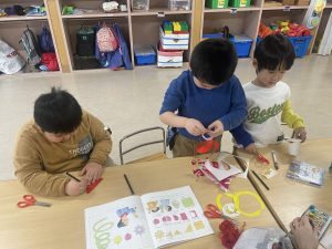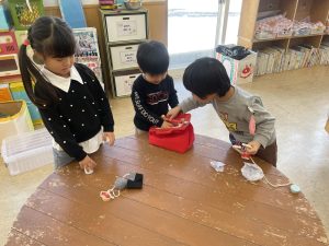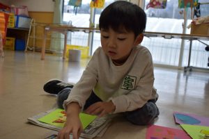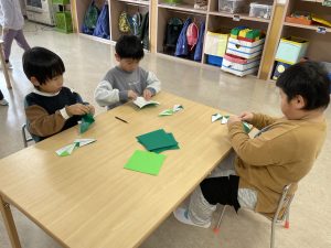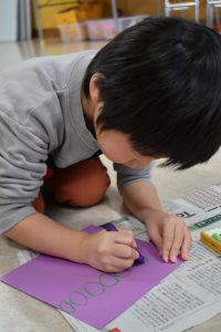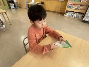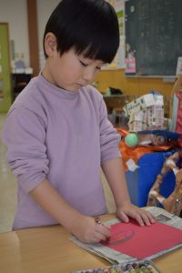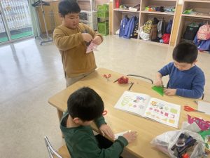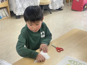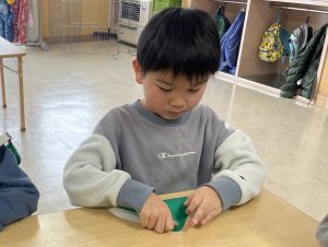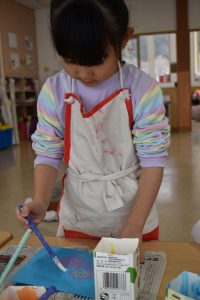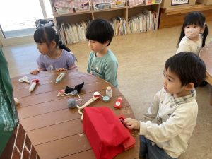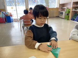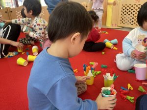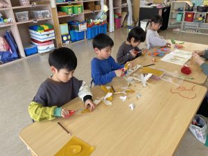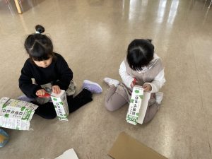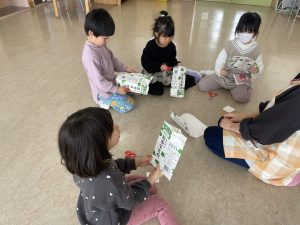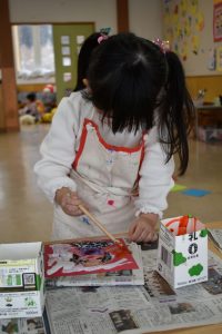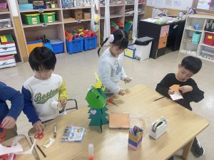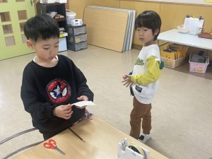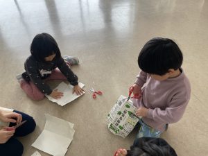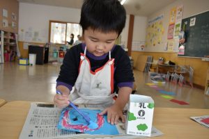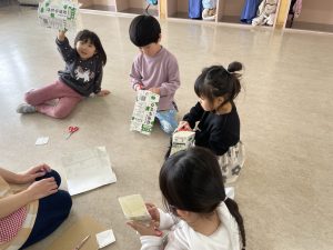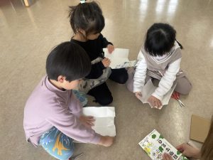 竹組(4歳児)は、牛乳パックを使って、何やら内緒のものを作っていましたよ。