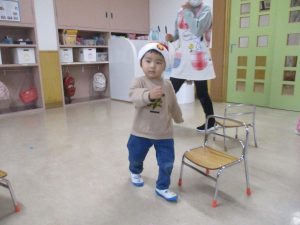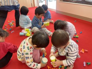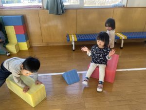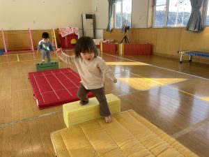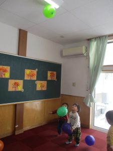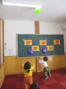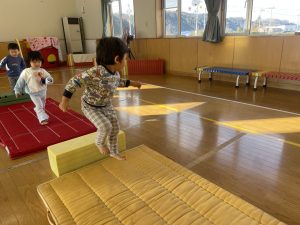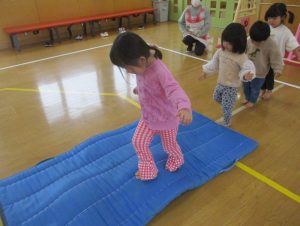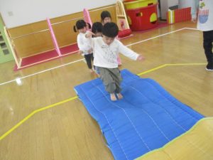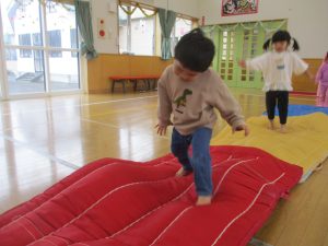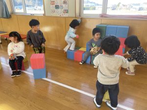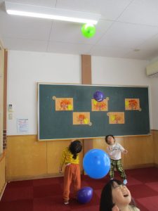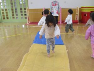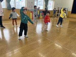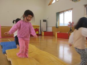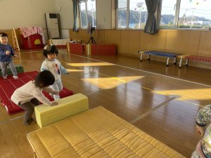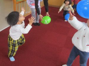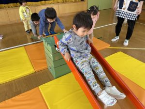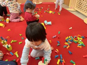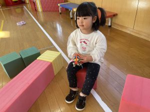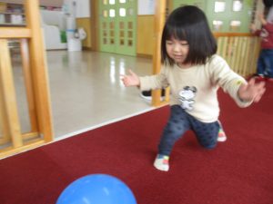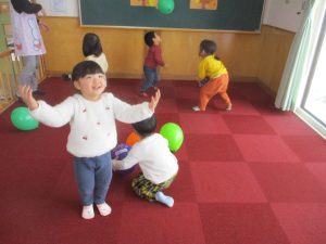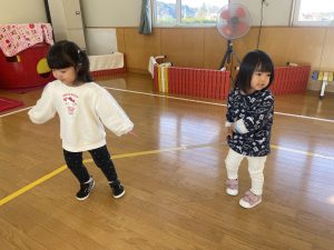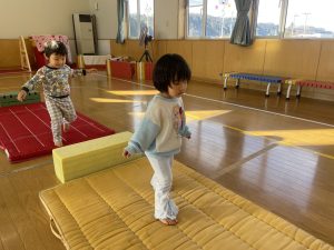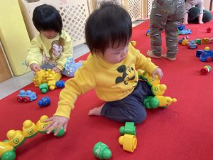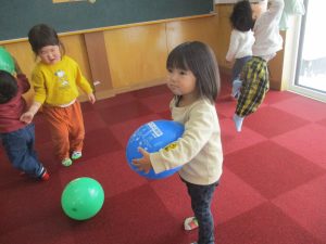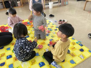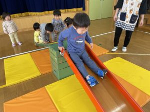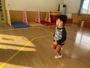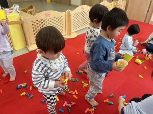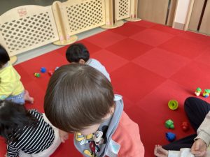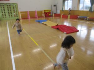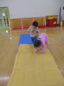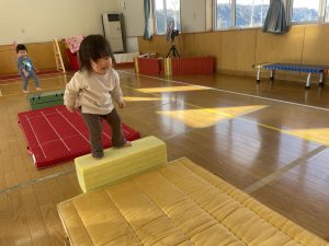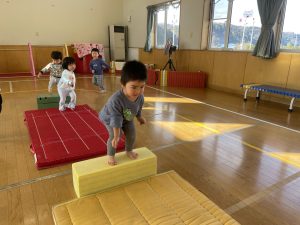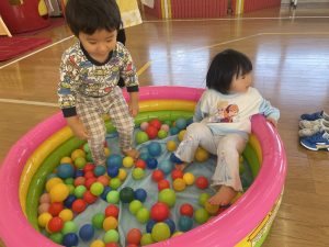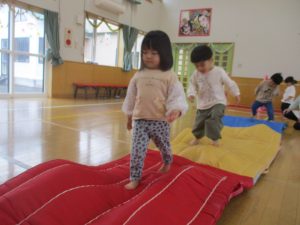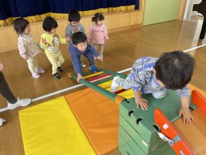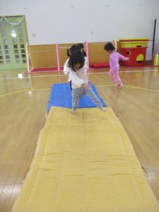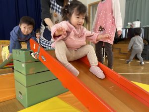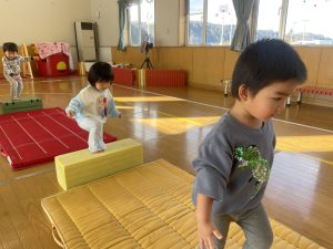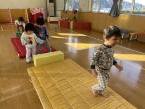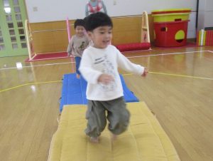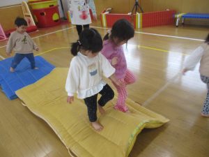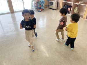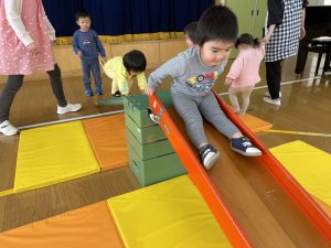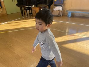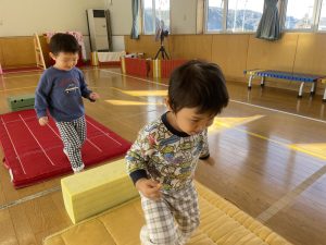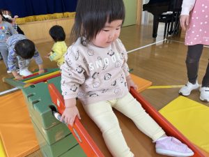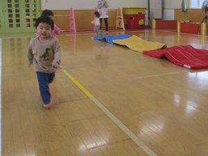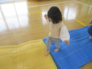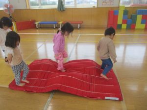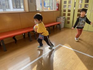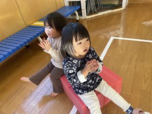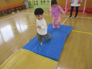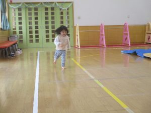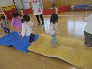 楓2組(2歳児)は、お部屋であそんだあと、遊戯室でもあそびました。