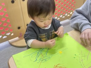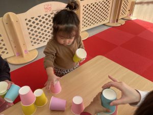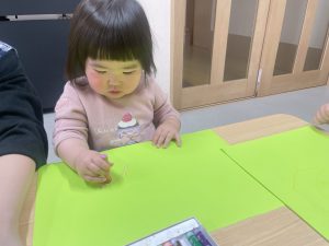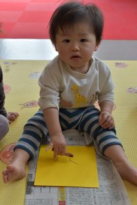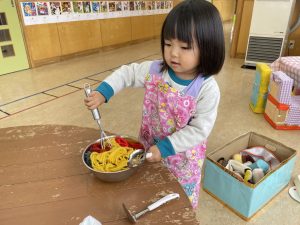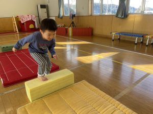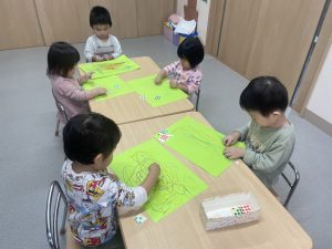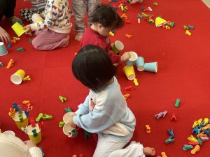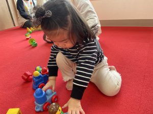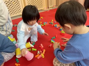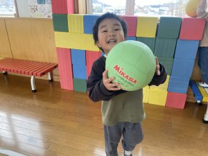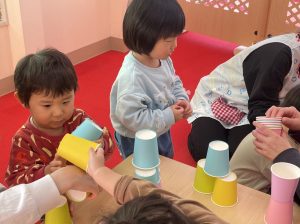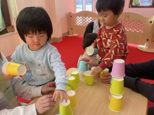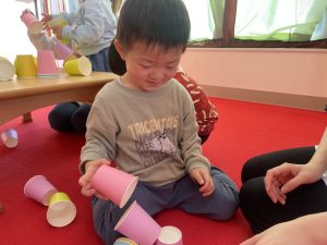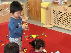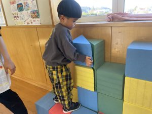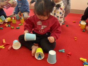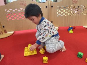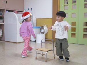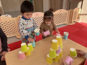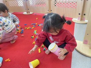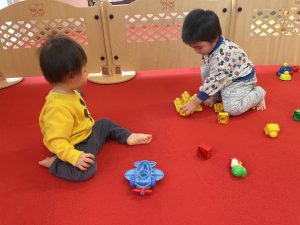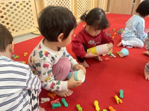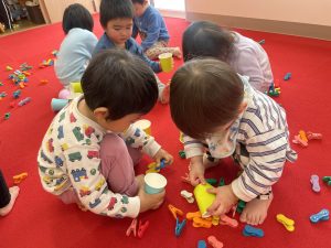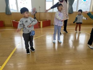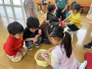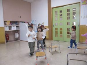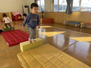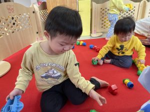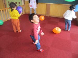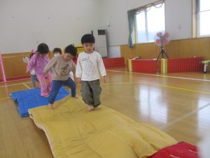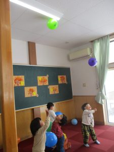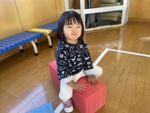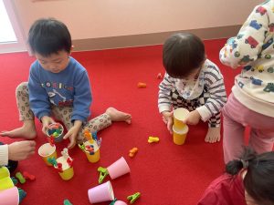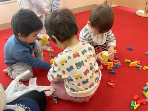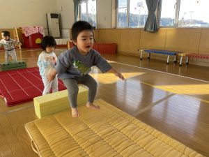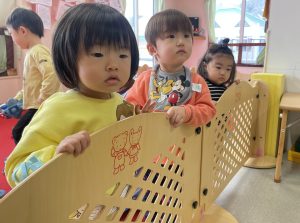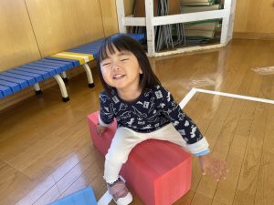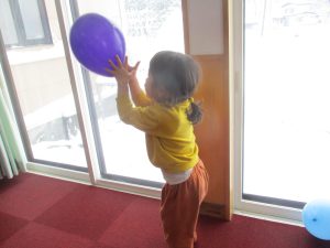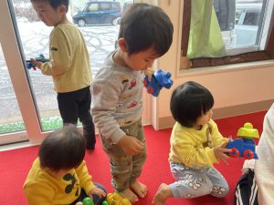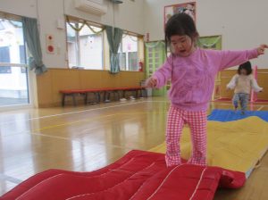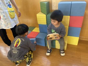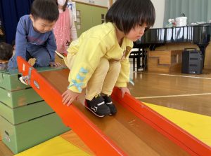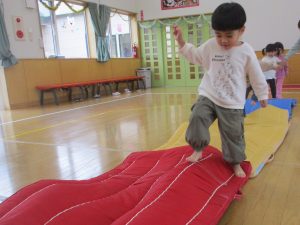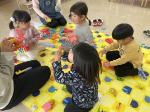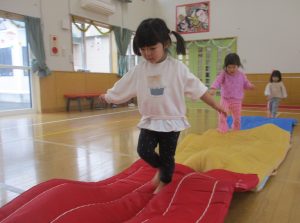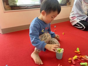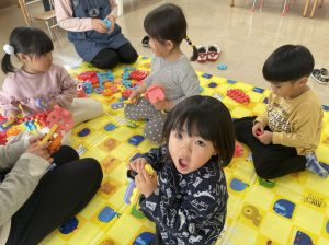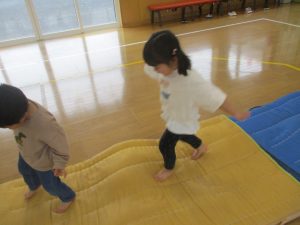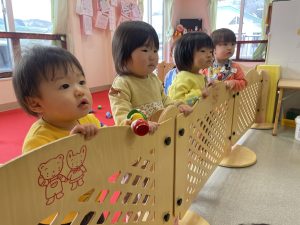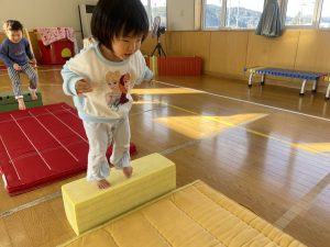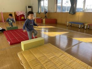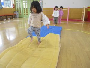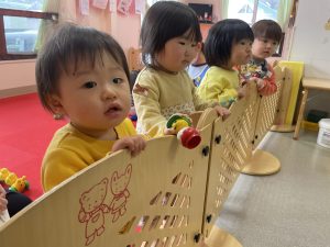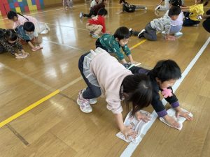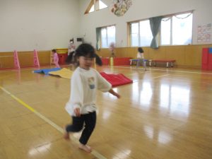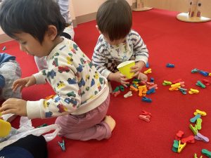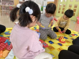 楓2組(2歳児)は、お部屋であそんだあと、遊戯室でもあそびました。