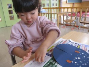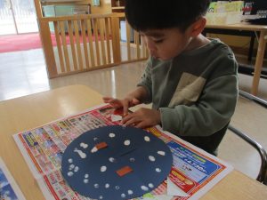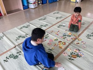 松組(5歳児)は、最近興味を持ち始めたカルタあそび。数種類あるカルタから自分たちで選びました。