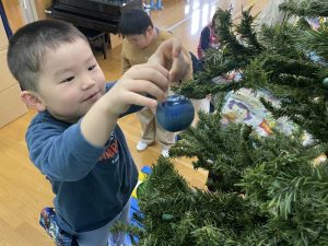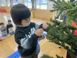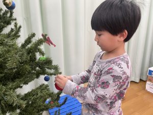 それに先立ち、今日はみんなでクリスマスツリーの飾り付けをしました。