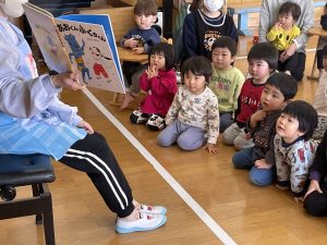 読み聞かせでは、明日の節分に向けて、鬼の話。みんな絵本が大好きですね。