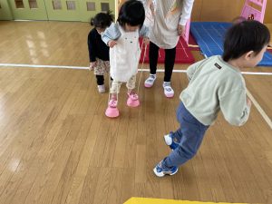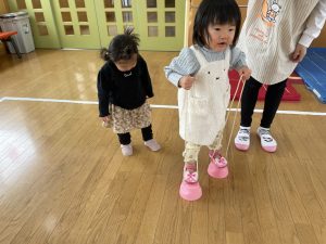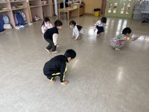 桃組(0歳児)と楓1組(1歳児)では、明日に向けて、秘密の特訓をしていましたよ。