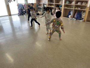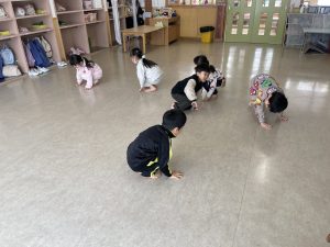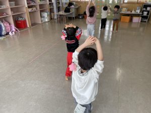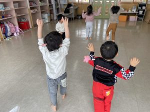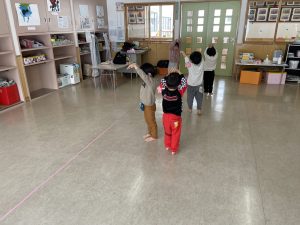 さて、感染拡大を防ぐために、朝会も放送で行い、リトミックもクラス毎に行いました。リトミックの写真を撮られなかったクラスもありますが、ご了承ください。