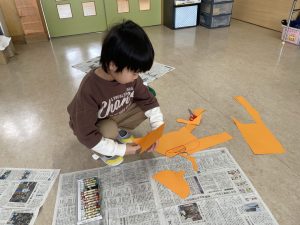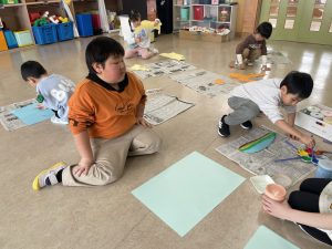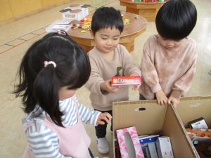 松・竹・桜組(5・4・3歳児)は、プロジェクト保育。月末に予定されているお店屋さんごっこが楽しみです。
