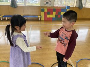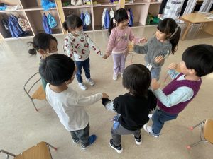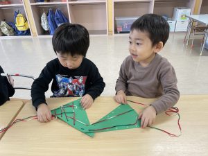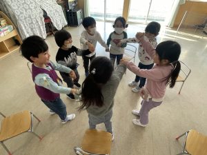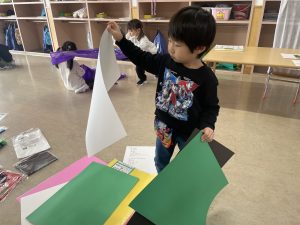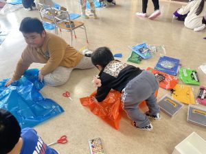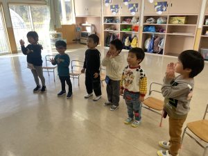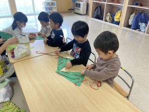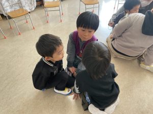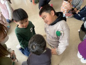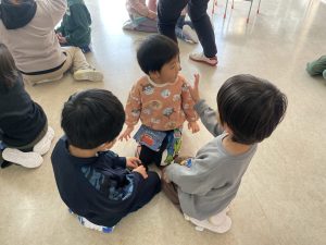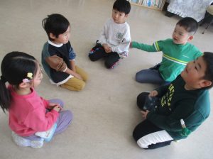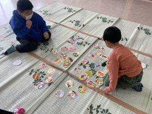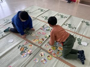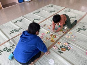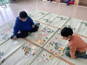 松組(5歳児)は、最近興味を持ち始めたカルタあそび。数種類あるカルタから自分たちで選びました。