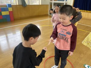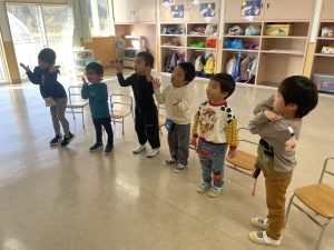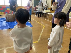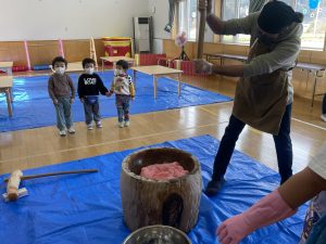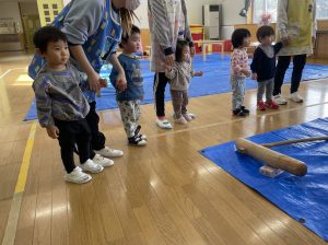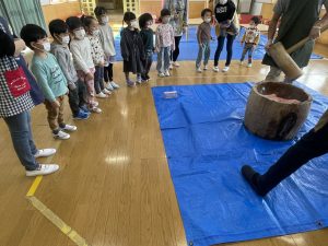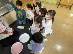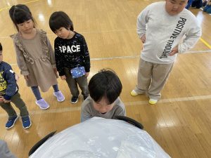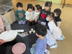 明日は大雪という天気予報。寒くなる予想でしたので、竹組(4歳児)の実験が再開しました。