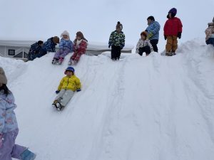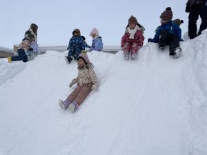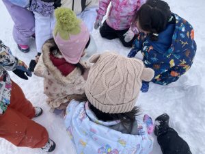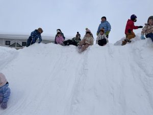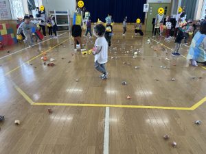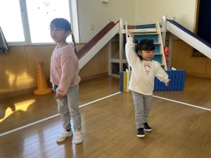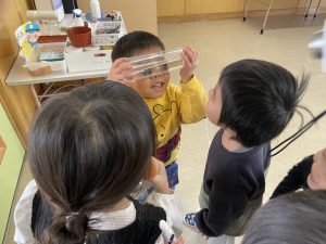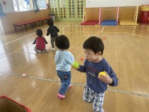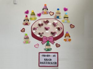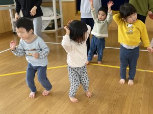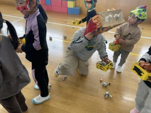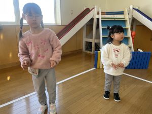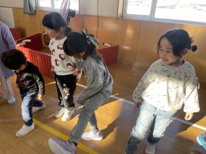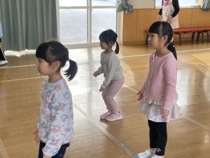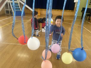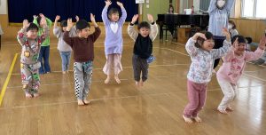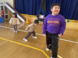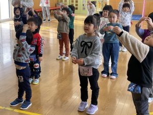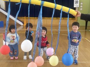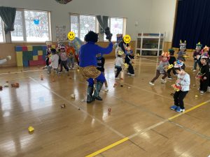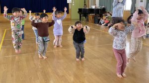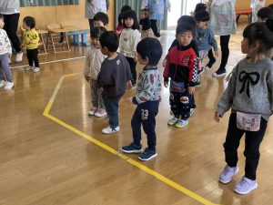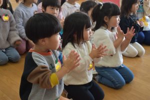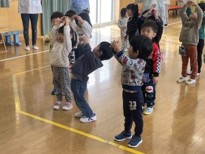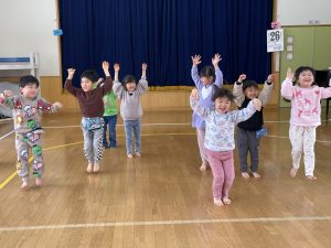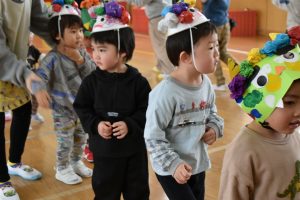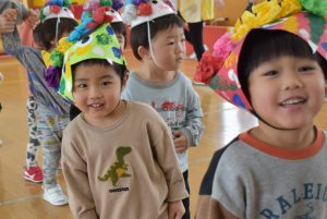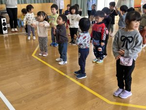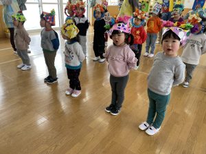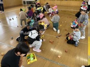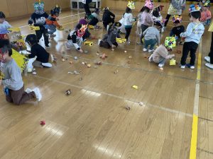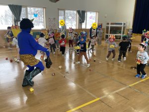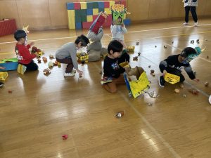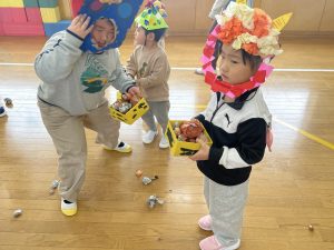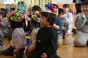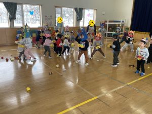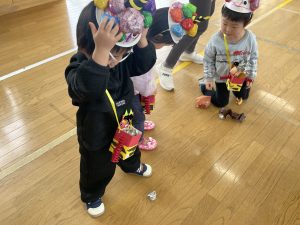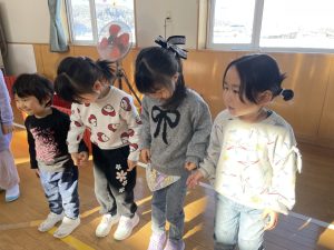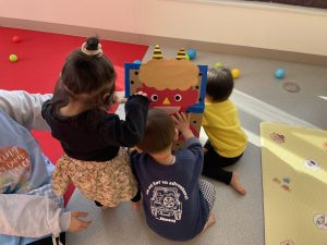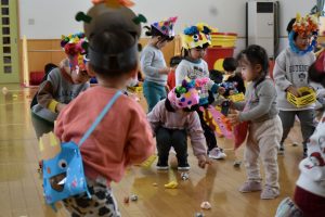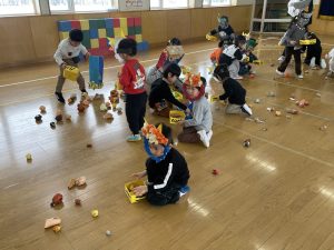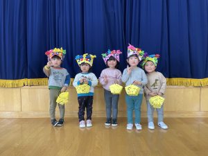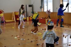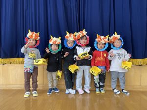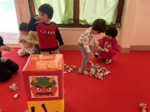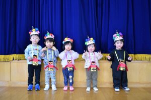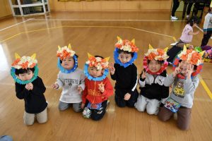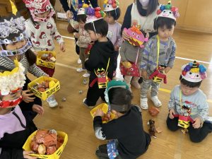 今日は2月3日節分。幼稚園では「まめまき集会」が行われました。