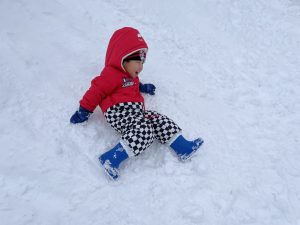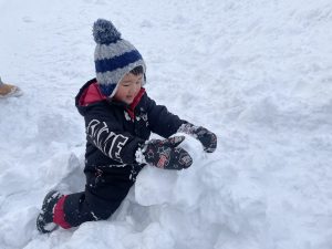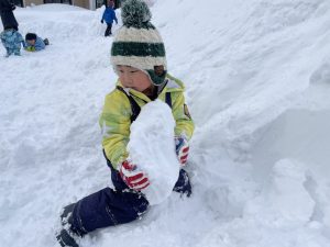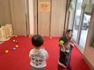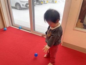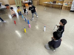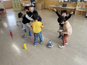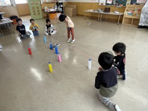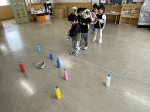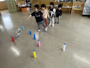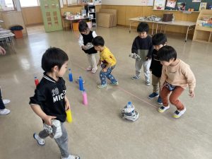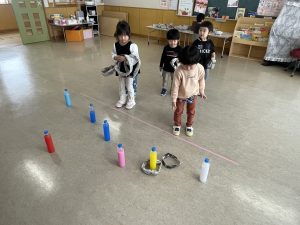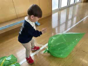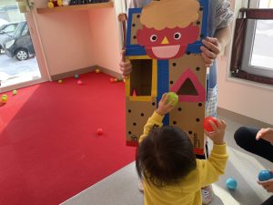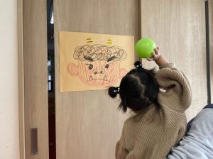 豆を鬼にぶつけようと頑張る子もいましたが、なぜか効果がありません。