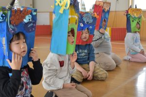 最後に、「”おこりんぼう鬼”や”泣きむし鬼”、”行儀が悪い鬼”などをやっつけましたか」という問いに元気よく「はい!」とお返事していました。
